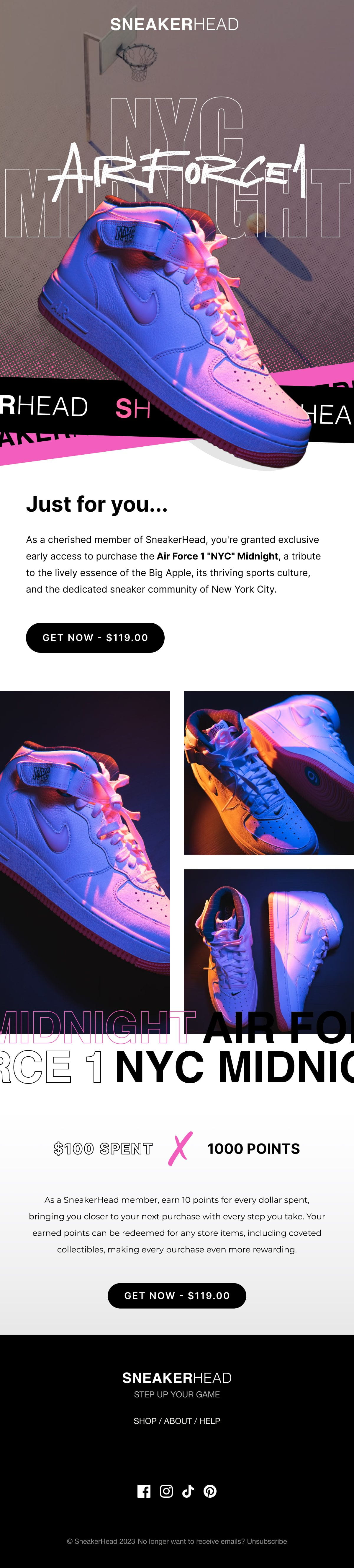 A full campaign template library built for a sneaker retailer running frequent product drops. Seven reusable layouts, dark mode ready, with a 44% lift in click rate.